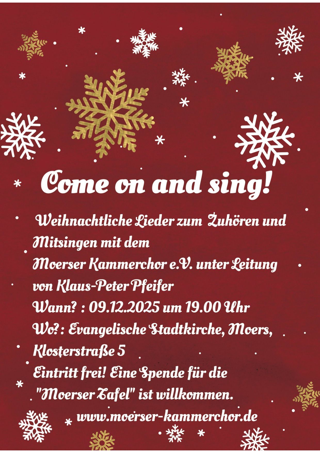 Der Moerser Kammerchor wünscht Ihnen eine schöne Adventszeit, ein frohes Weihnachtsfest und ein friedvolles, glückliches Jahr 2026!